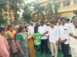 అమలాపురం పురపాలక సంఘ కార్యాలయం ఆవరణలో స్థానిక ఎమ్మెల్యే అయితాబత్తుల ఆనందరావు చేతుల మీదుగా పట్టణ పారిశుద్ధ్యాన్ని మెరుగుపరచడానికి ,స్వచ్చ్ సర్వేక్షన్ :2025-26 లో అత్యుత్తమ ర్యాంక్ సాధించడానికి అమలాపురం పురపాలక సంఘం ద్వారా 5 లక్షల రూపాయలతో కనుగోలు చేసిన 350 తడి-పొడి చెత్త డబ్బాలు.